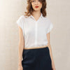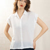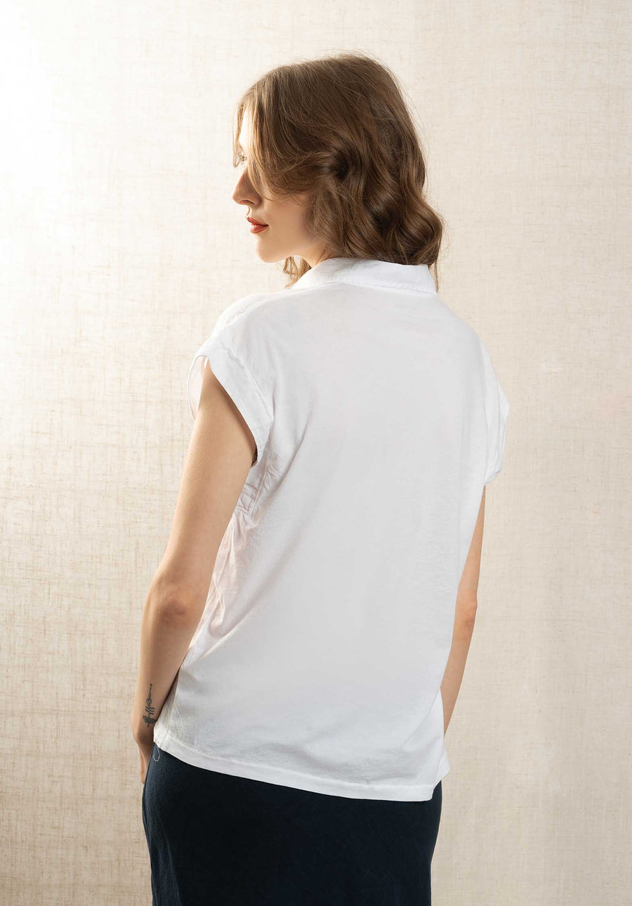 Women's sleeveless women's shirt in double fabric cotton. Visible button placket.