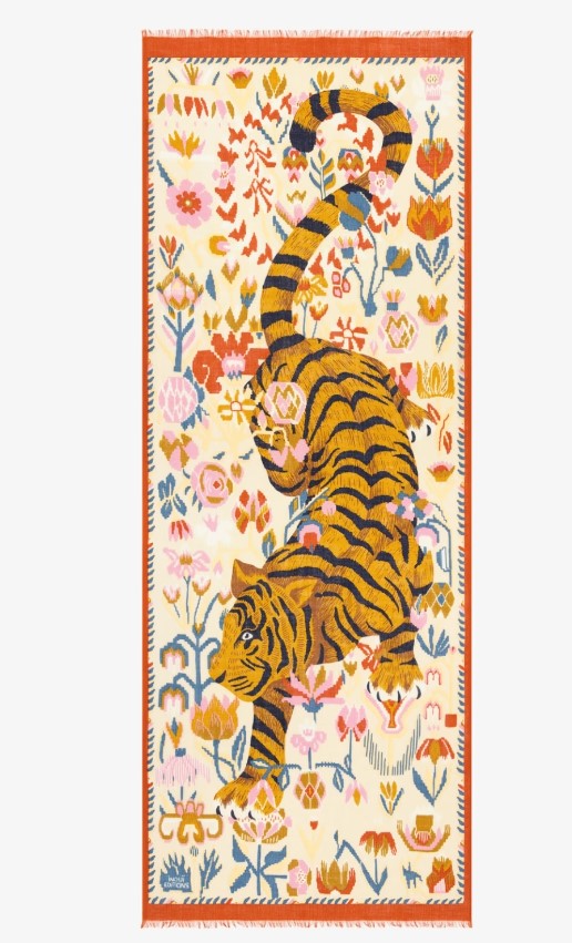 This line of hand-printed scarves comes in several sizes, depending on the design. Soft and ideal for winter, this wool is washable.