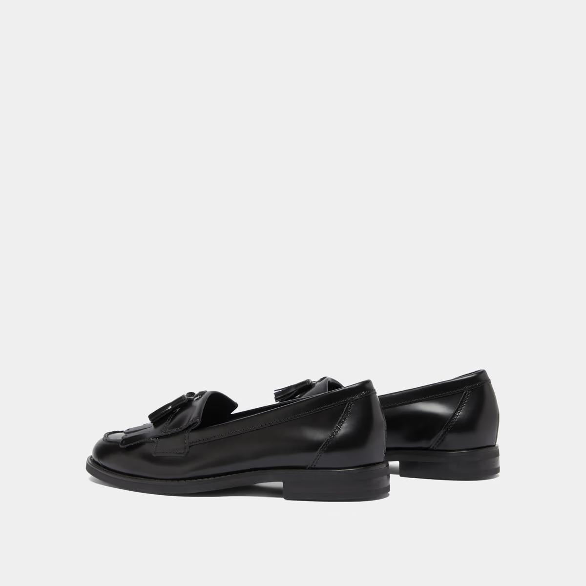 Loafers with all the details we love, the NELLE are adorned with tassels and tabs. Thanks to their detailed structure, all your outfits will be sublimated. What's more, with their rounded toes, enjoy the comfort they provide. In black glazed leather, count on timelessness.