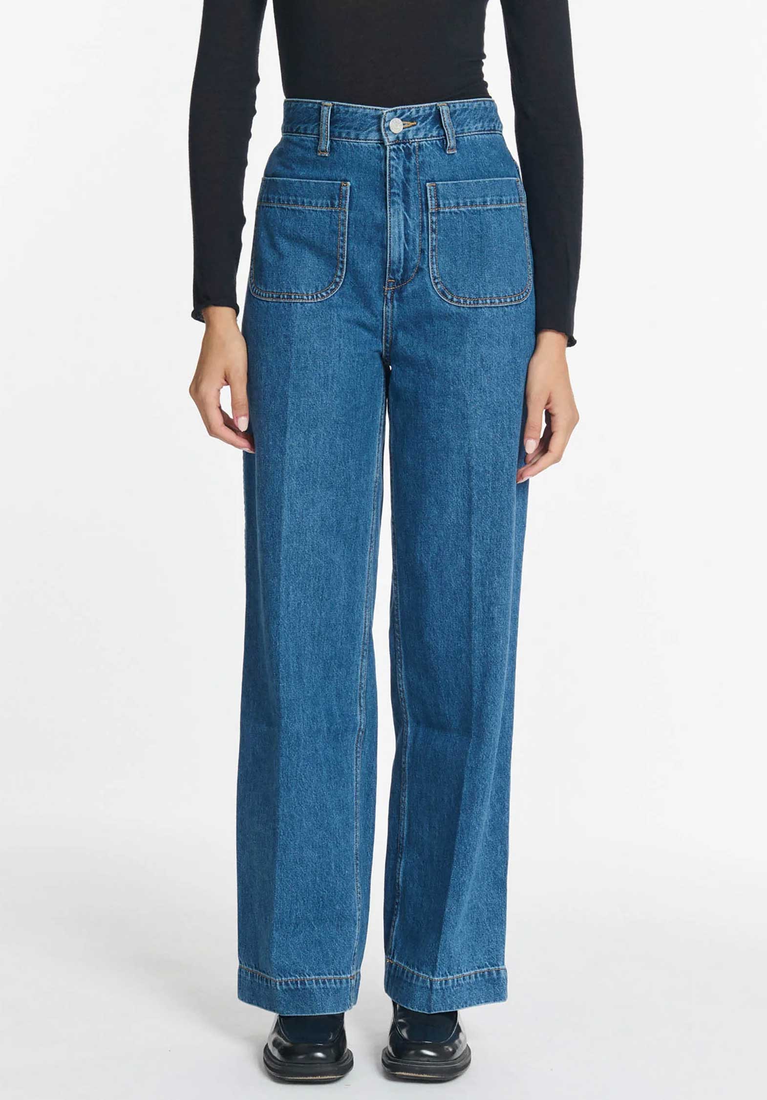 Resolutely vintage it refines the silhouette and creates endless legs to you, to contrast with a short sleeve shirt with a little volume Dolly. Dare the total denim look by combining the jackets Baya Or Betty.