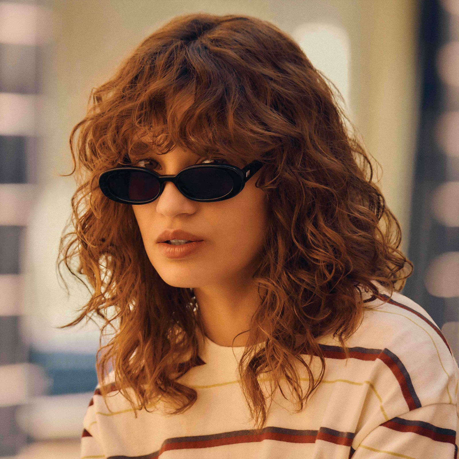 Exuding '90s confidence, our iconic OUTTA LOVE silhouette offers a minimal nineties look. This petite, slimline oval silhouette features a modern flat profile and signature Le Specs gold metal hardware, and is just the right size to complement your face without hiding your best features.Designed for a smaller, more petite fit, perfect for those with narrower face shapes. Finished in a black frame with smoke mono lenses. A lightweight, durable and impact resistant polycarbonate frame. Fitted with shatterproof and scratch resistant polycarbonate lenses. Worn by Bella Hadid, Gigi Hadid, Sophie Turner, Dua Lipa, Kourtney Kardashian, Olivia Rodrigo, Kesha, Zoe Kravitz.