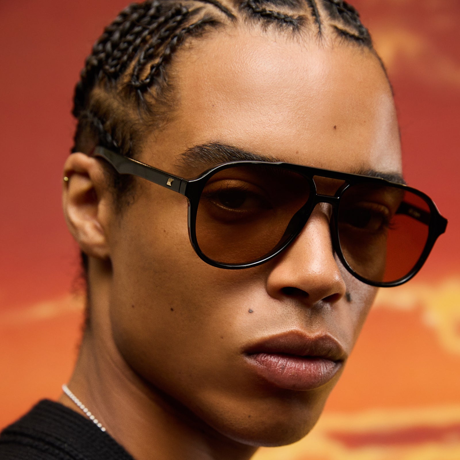 Exuding a carefree spirit and effortless aesthetic, TRAGIC MAGIC is the must-have aviator sunglass for summer. This '70s inspired silhouette offers a slightly oversized fit with flattering unisex proportions and is detailed with our understated pyramid stud hardware on both temples. Finished in a black frame with tan tint lenses. Made using BPA free polymer plastic which is lightweight, durable and impact resistant. Fitted with shatterproof and scratch resistant polycarbonate lenses.