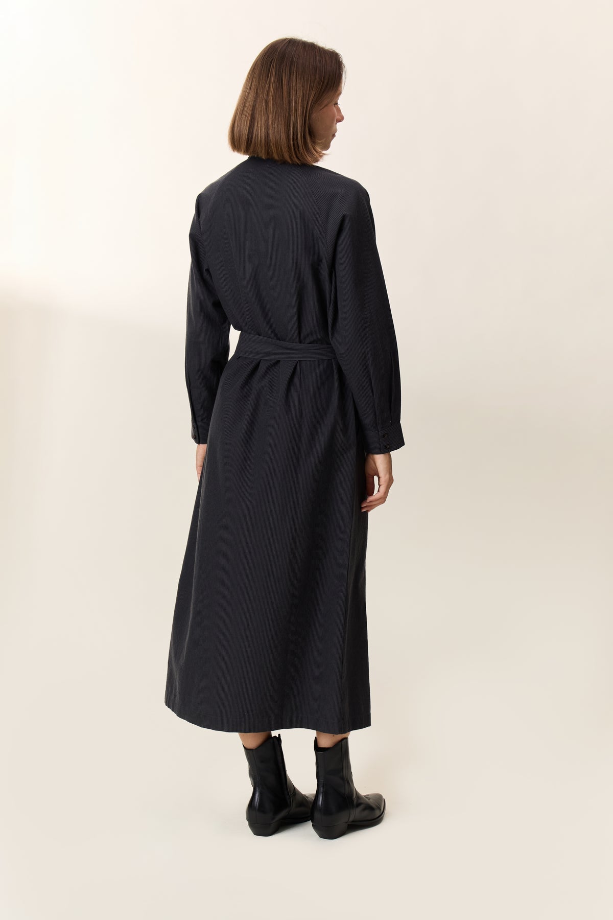 Designed to enhance the silhouette, the Reda Strp dress combines structure and flexibility, drawing its inspiration from the timeless trench coat