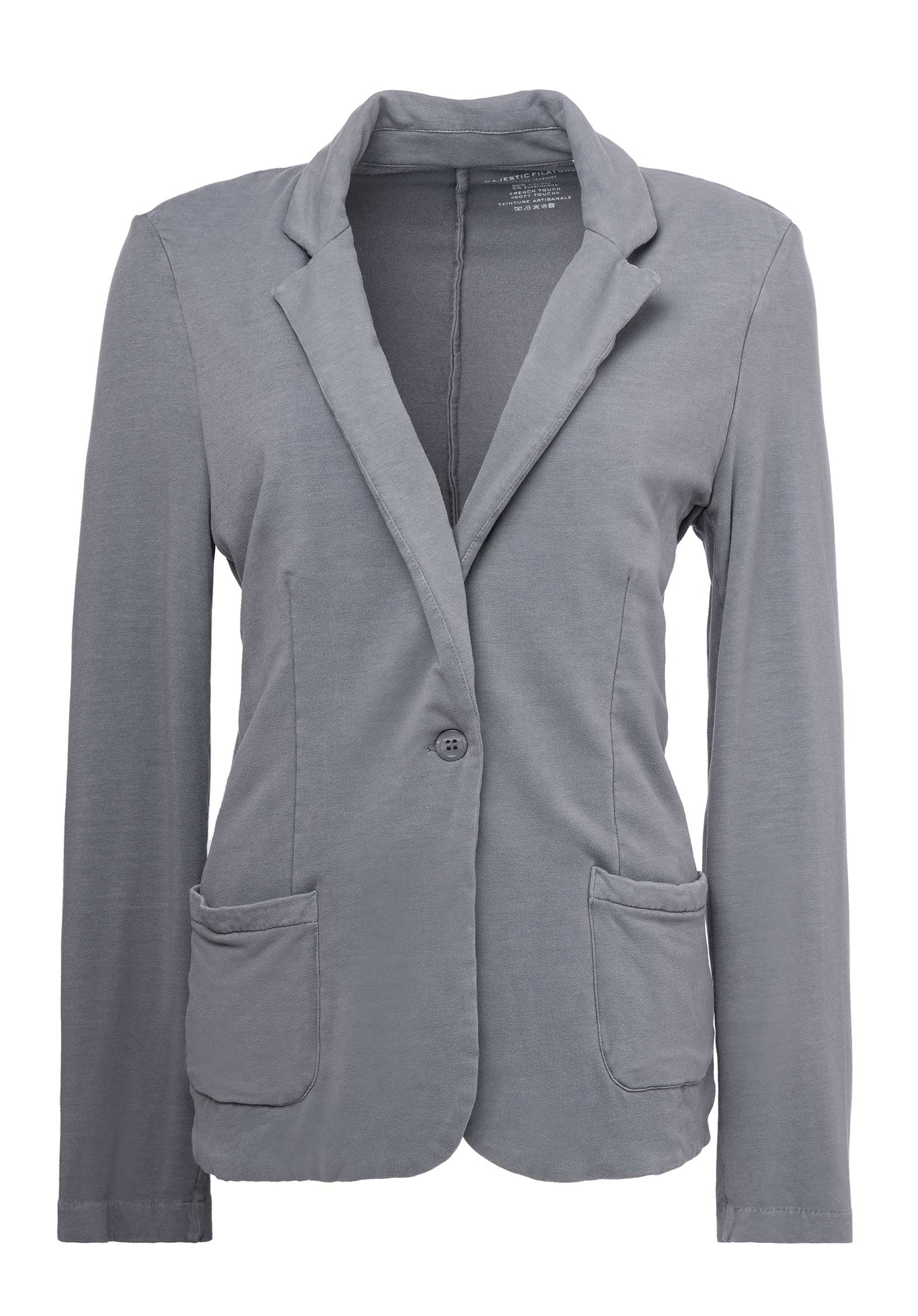 linen stretch blazer features a luxurious hand and a semi-fitted