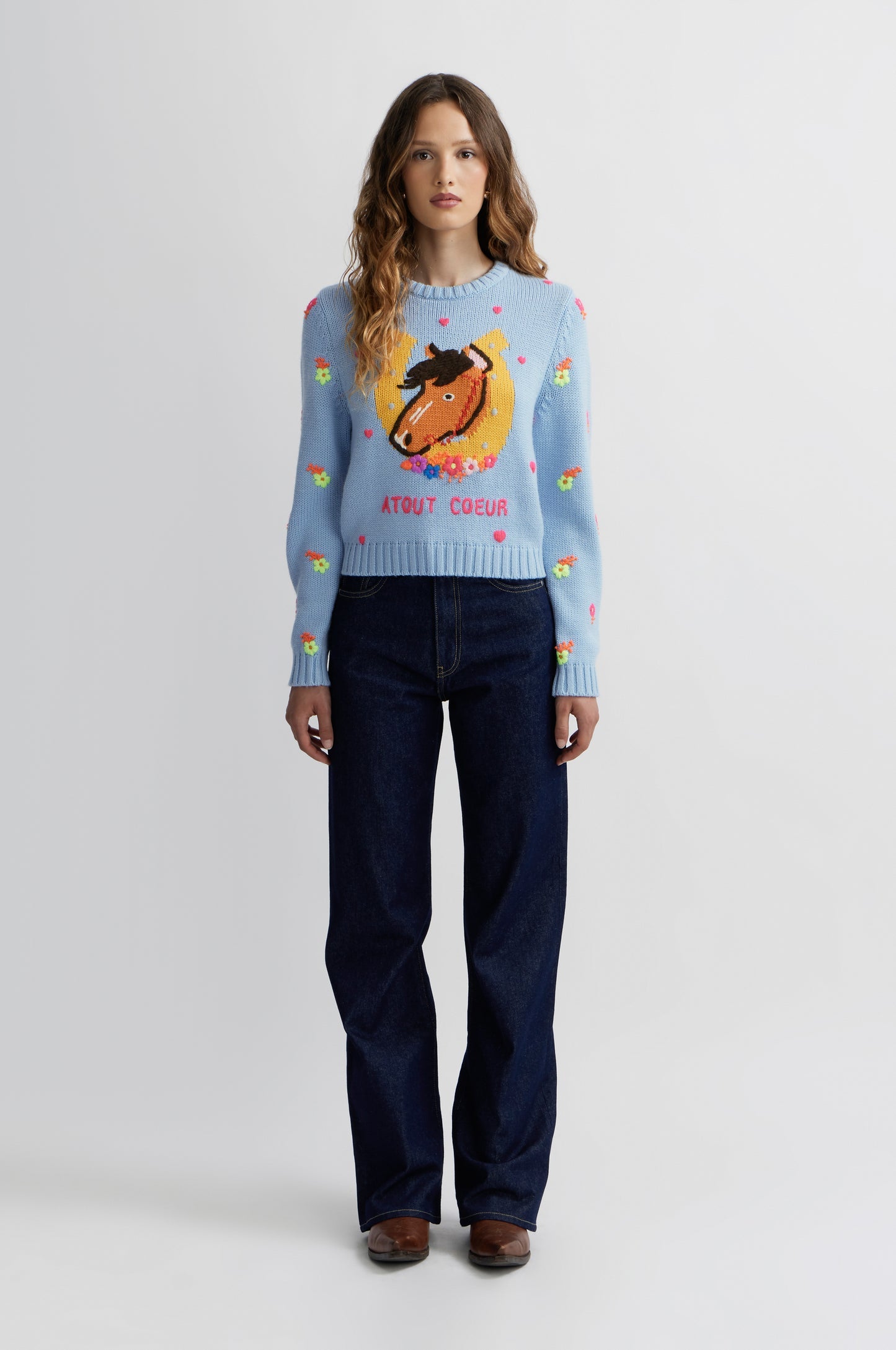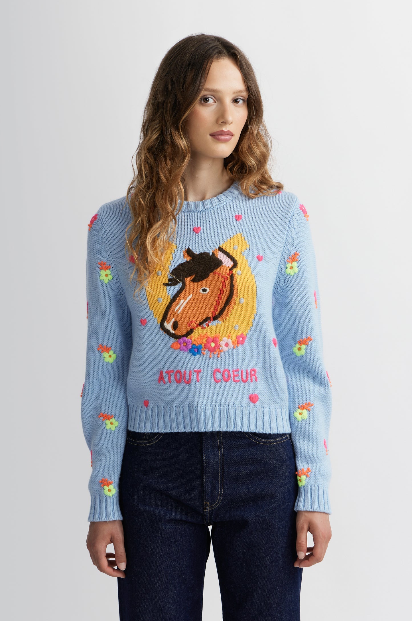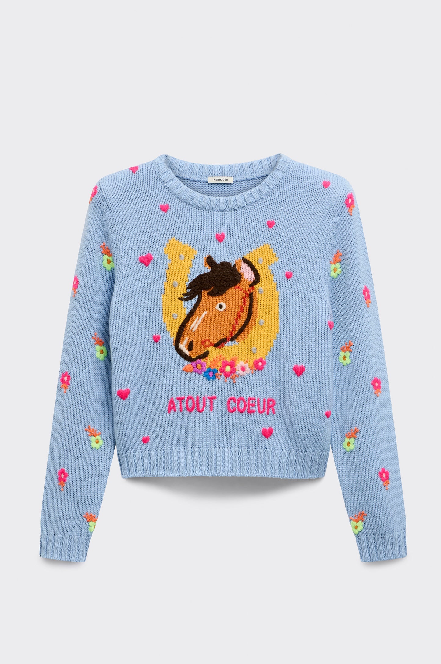 This Luck sweater is designed as a 1 lucky charm, to be paired with prints for a decidedly Manoush look.