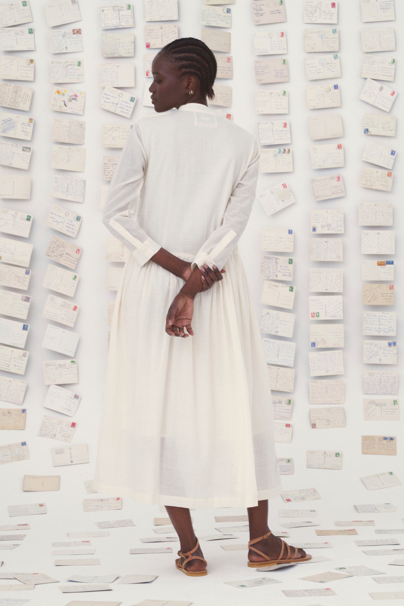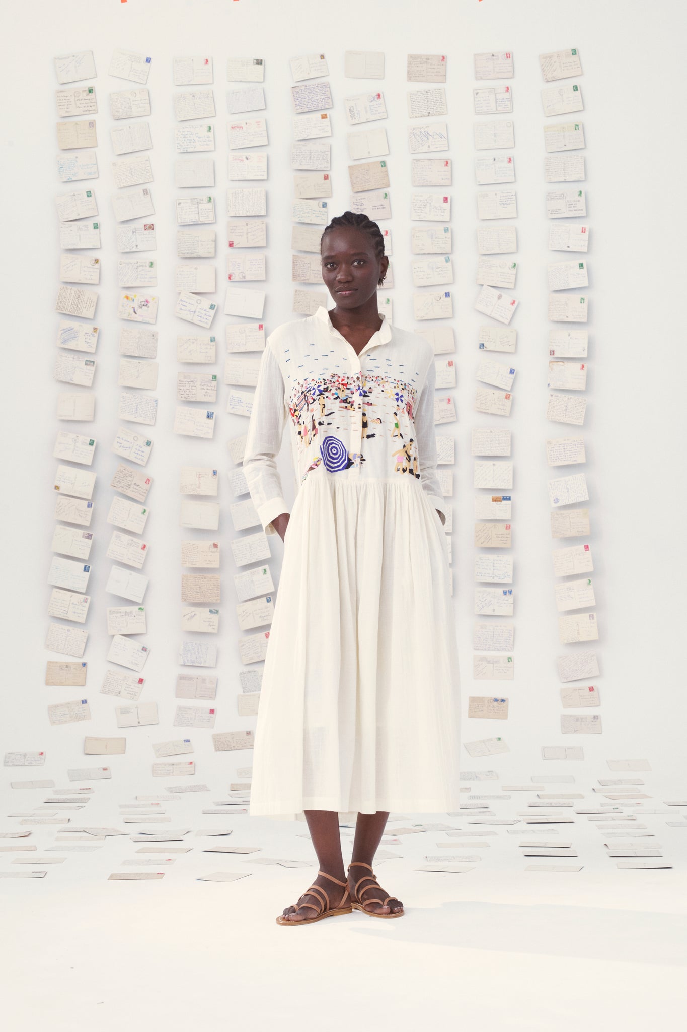 The Tara maxi dress is entirely handwoven from airy Khadi cotton. The embroidery is a nod to the iconic theme of holiday postcards: summer beach scenes! A timeless classic, the Tara dress has been updated this season with longer sleeves and a straighter cut.