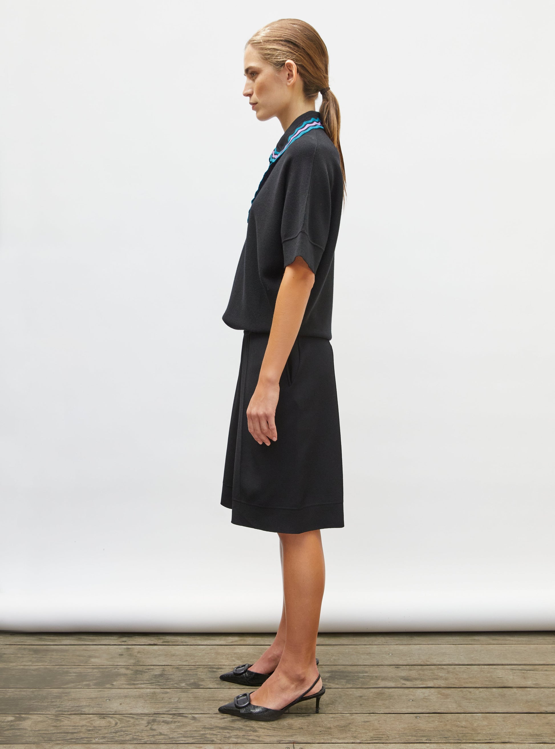 Made in Italy from a pure, extra-soft wool yarn, Molli's fine garter-stitch knit top features a relaxed, seamless line without armholes for great comfort. The milano trims at the bottom of the body give it a pretty blousy look and good hold, while the two-tone rick-rack-style collar adds a touch of elegance.