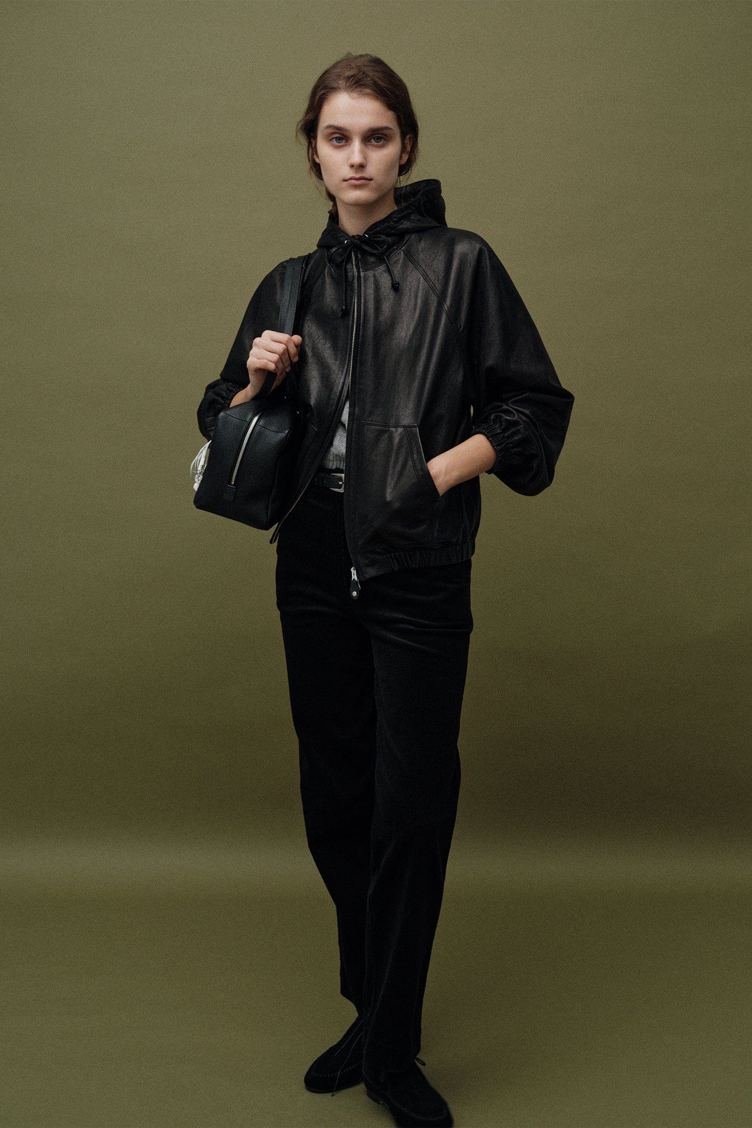 It is a leather hooded zip-up that creates a casual mood.It is made of vegetable ramskin dyed with vegetable tannins, and over time, natural gloss and color are added to bring out its unique style and luxurious texture. Lightweight, soft and flexible material naturally fits the body and is highly wearable and durable. Round silhouettes leading to raglan sleeves and band details applied to the sleeves and ham lines give a three-dimensional silhouette, and YKK 2-WAY zippers allow you to complete your colorful style.The leather strings located on both sides of the hood are adjustable in size, allowing for a variety of styling and adding practicality with kangaroo pockets. The top of the zipper slider is a logo label with an edge-coated leather puller and sophisticated embossed processing to further enhance completeness.