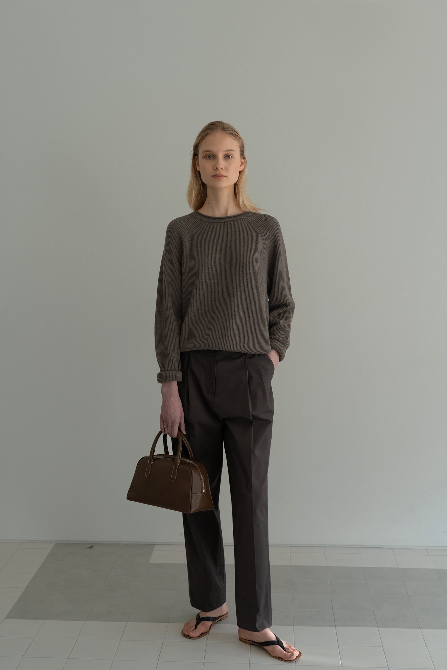 YKK zipper closure structure. A tote bag made of natural cowhide featuring a solid yet soft feel with a semi-hard texture. Stitching on all four sides of the bottom. Easy storage in the inner pocket. The surface treatment of natural leather makes it resistant to discoloration and scratches, and features excellent durability and resilience. Please refer to the detail cut for product color.