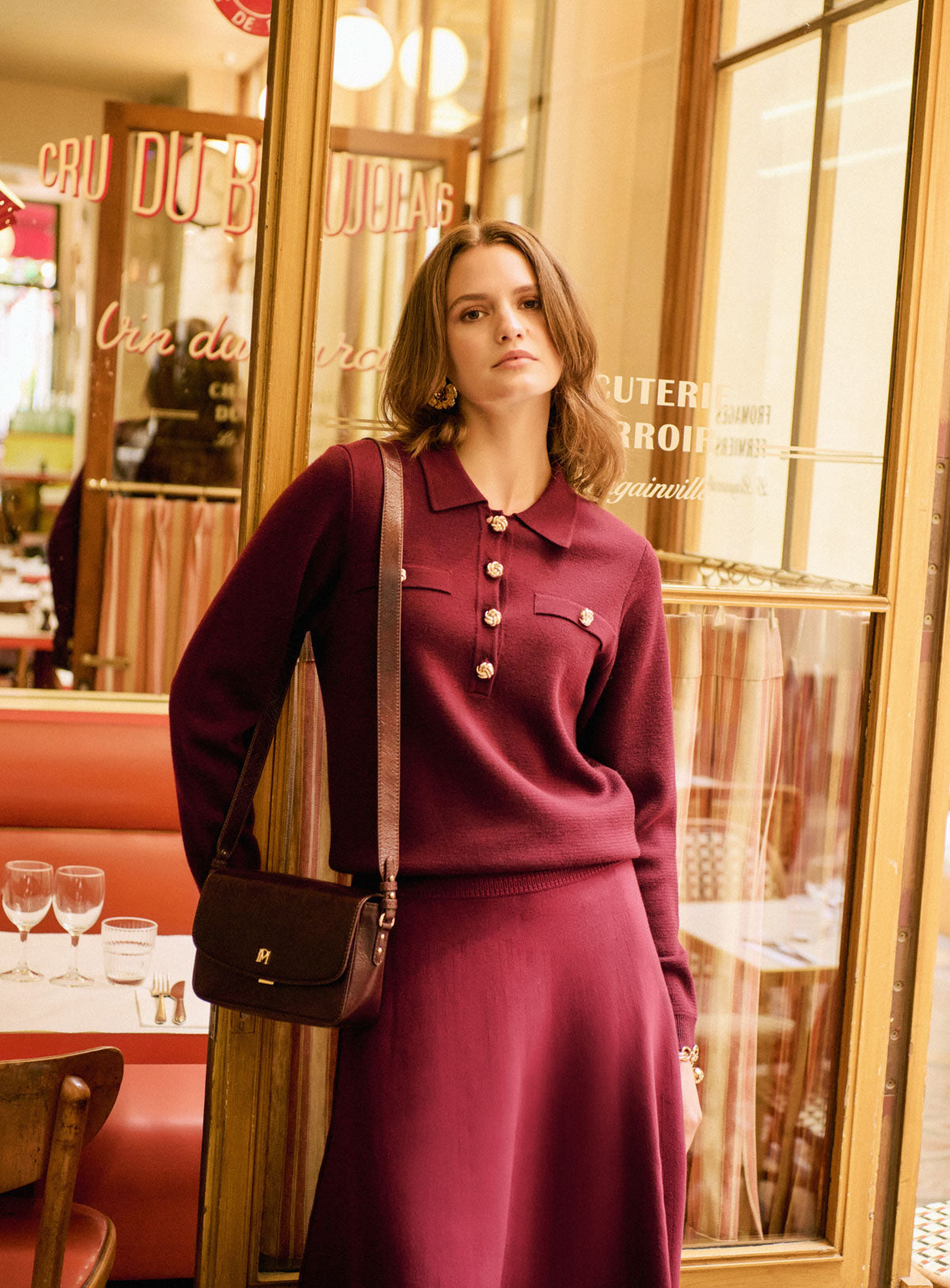 Why we love it: A 1 color obsession for fall, burgundy has the ability to flatter all skin tones. It can be worn with the Jasmine high-waisted skirt for a total look or with straight-leg jeans for a more casual look. A retro piece with a sportswear look, we're going for the plain long-sleeved polo shirt!