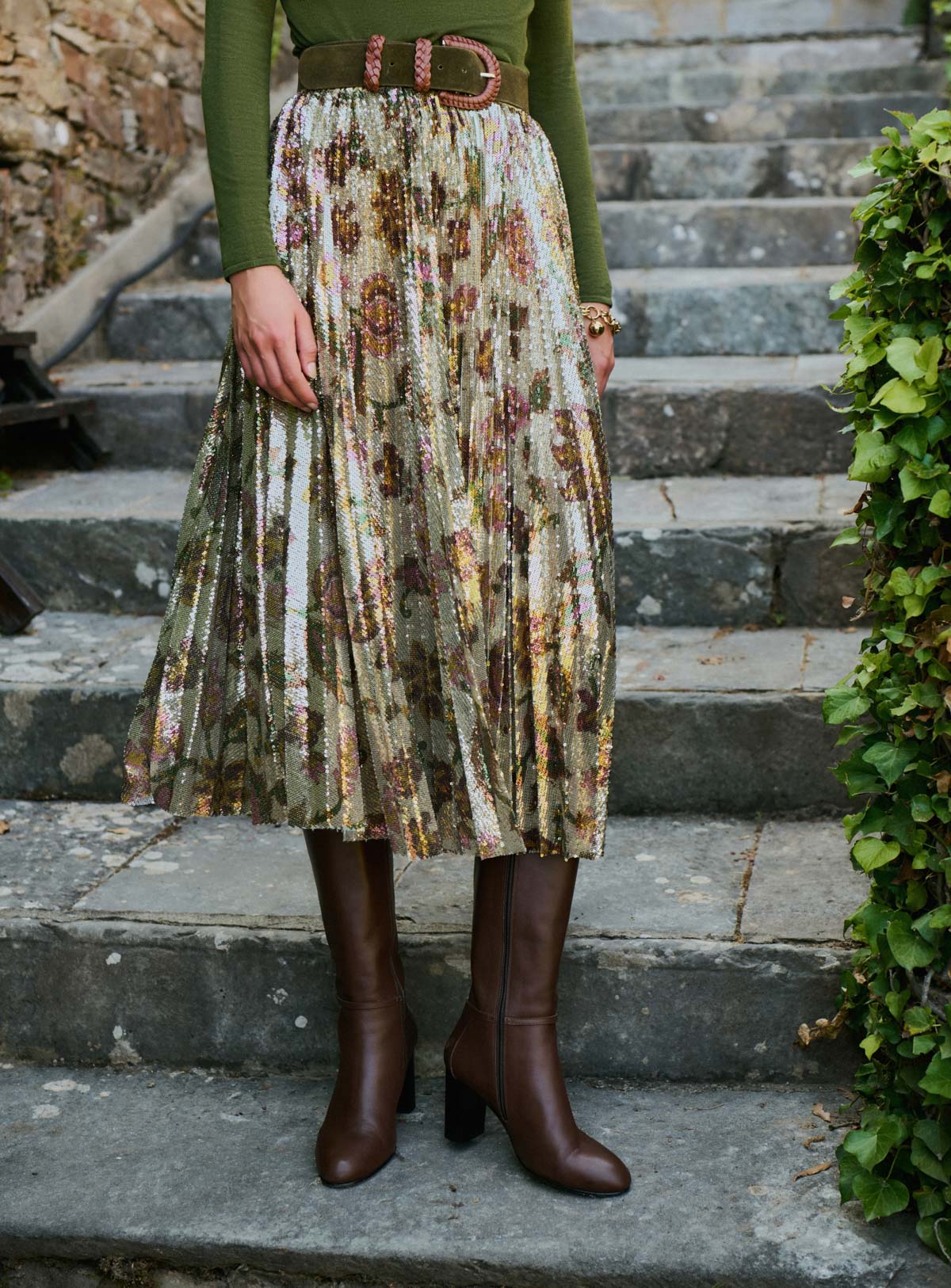 Why we love it: Our must-have JUNON skirt is adorned this season with sequins and a floral print. A strong piece that captures the light and perfectly embodies the spirit of the season: feminine, bold, and comfortable. Its fluid and comfortable cut enhances all silhouettes and lends itself to all desires. We love it worn with our MANIA undershirt and CIANO boots for a stylish and perfectly seasonal look.