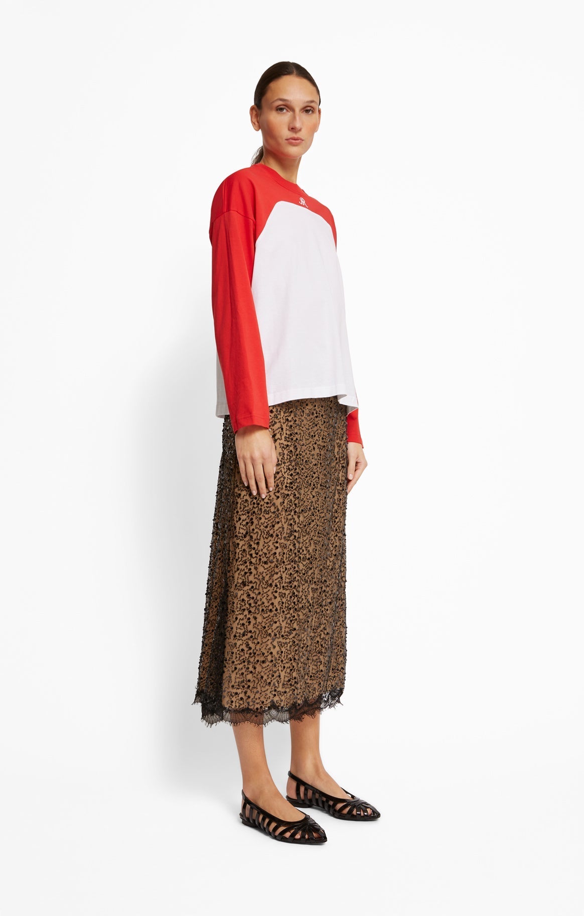 The Jump Sweatshirt isn't just a basic layer; it's a testament to Roseanna's commitment to "flamboyant classicism." Crafted from GOTS-certified 100% organic cotton, the jersey fabric feels incredibly soft against the skin while maintaining a structured, high-quality silhouette. The striking red hue is accented by thoughtful design details, including contrasting panels on the shoulders and sleeves that evoke a vintage sporty aesthetic.