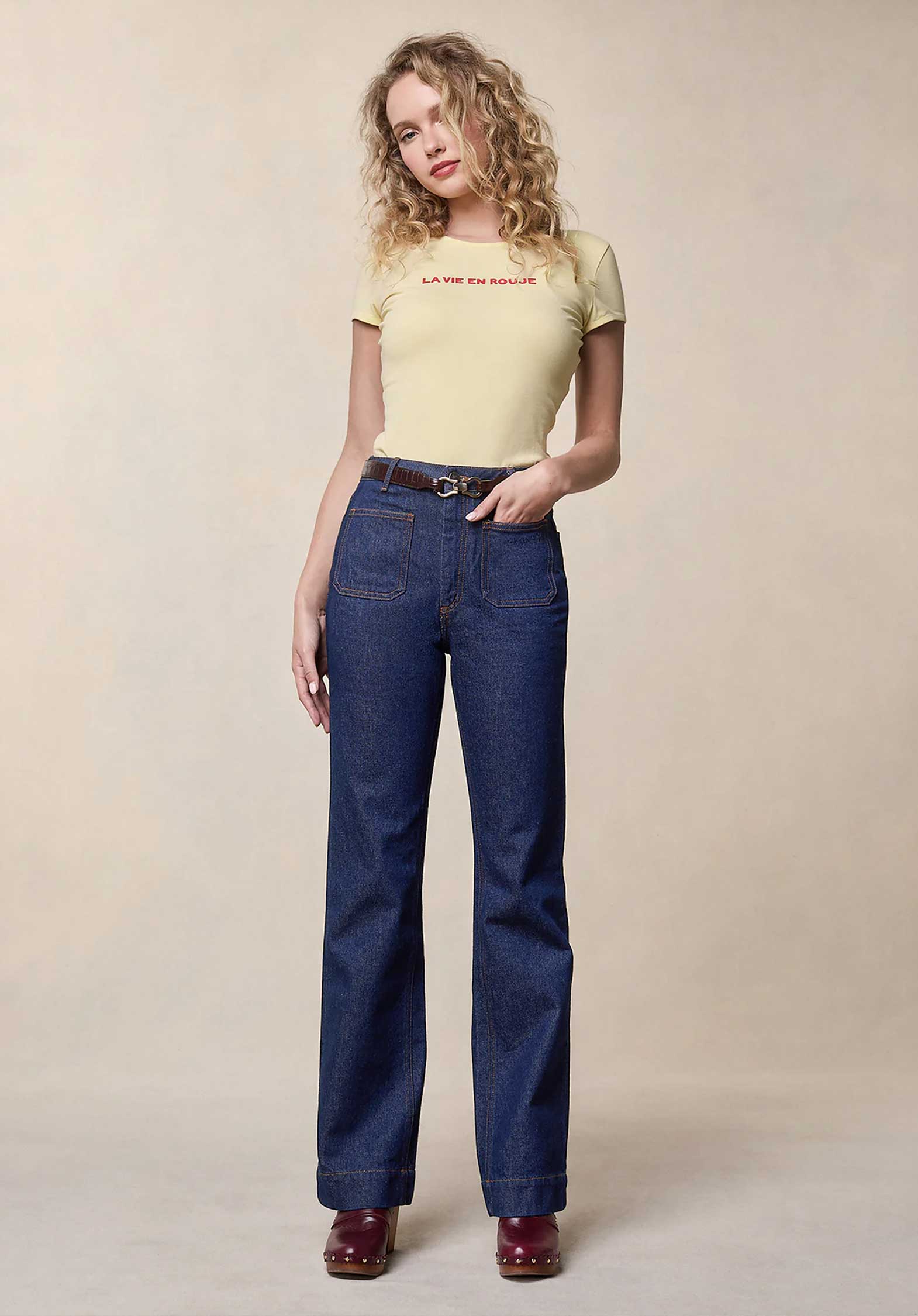 A long and flared leg, a high-rise, patch pockets on the front... The Belleville has some things in common with the Saint-Ouen, in a less stretchy and more rigid fabric than its cousin.