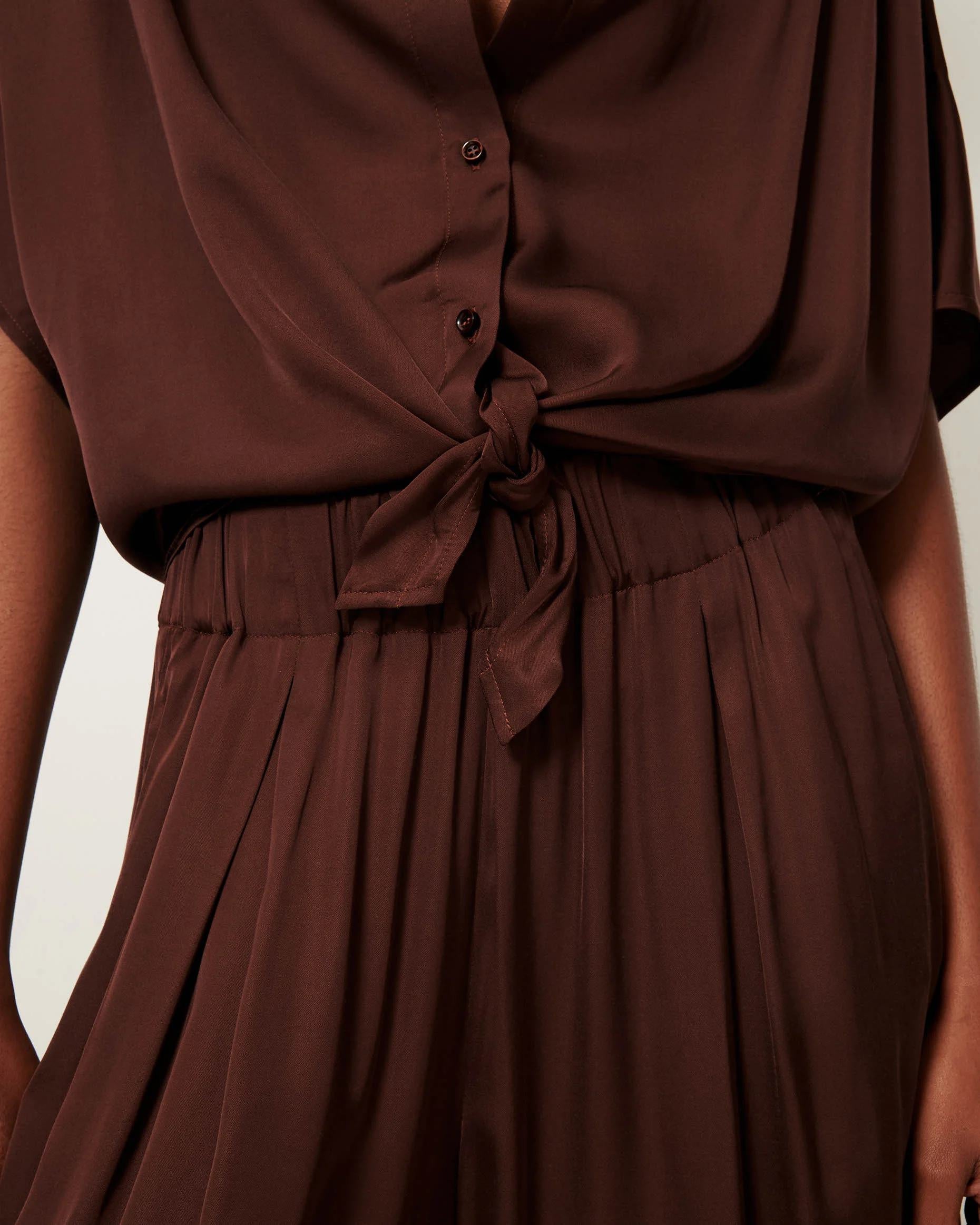 Cropped tie-front shirt made from soft stretch viscose seersucker crpon.
