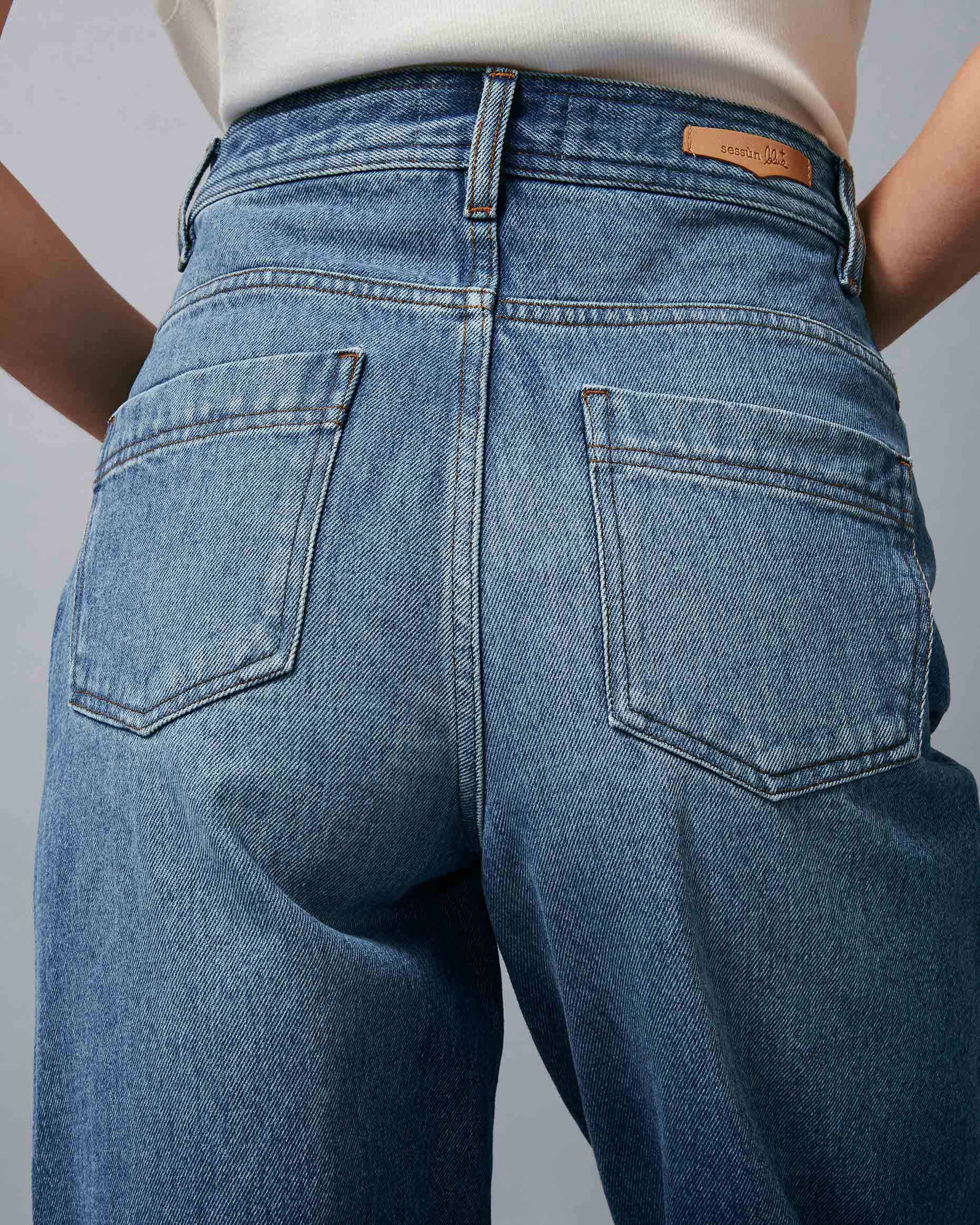 Straight-leg high-waisted jeans, tighter at the bottom, in washed garment-dyed denim.