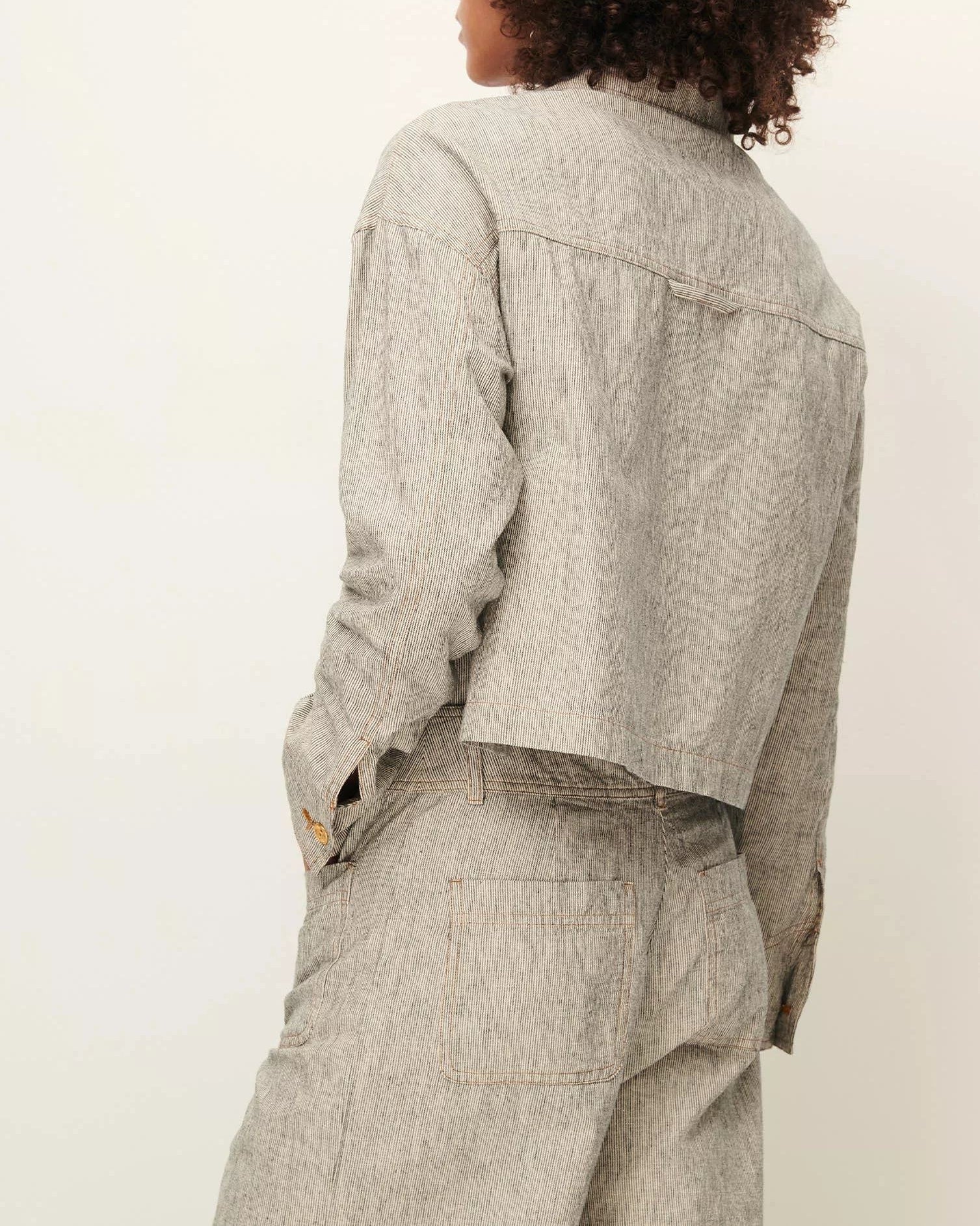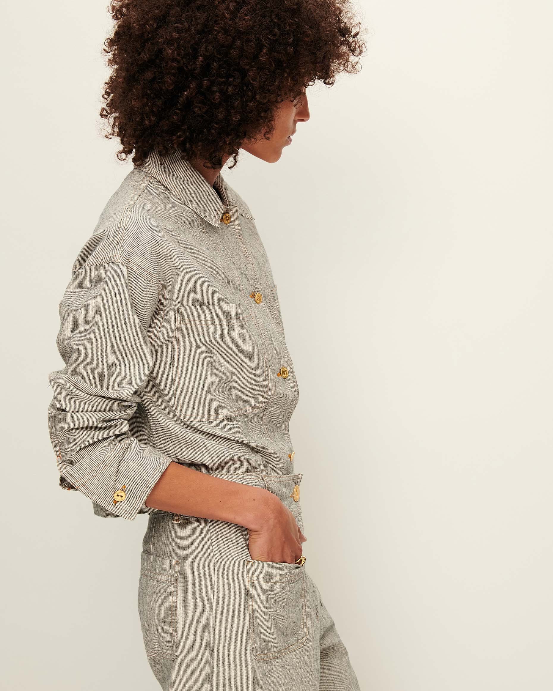 Woven in Spain from a cotton-linen slub yarn, this overshirt pairs a light, airy hand with its textural two-tone stripe. The slub texture creates subtle ridges that catch the light and soften creases, so you look polished without constant fuss. Practical patch pockets keep your essentials close—phone, cards, or notebook—while you move through your day with confidence. Layer it over a simple tee for a relaxed daytime look or over a lightweight sweater as temperatures dip, and you'll feel the fabric breathe with every step.