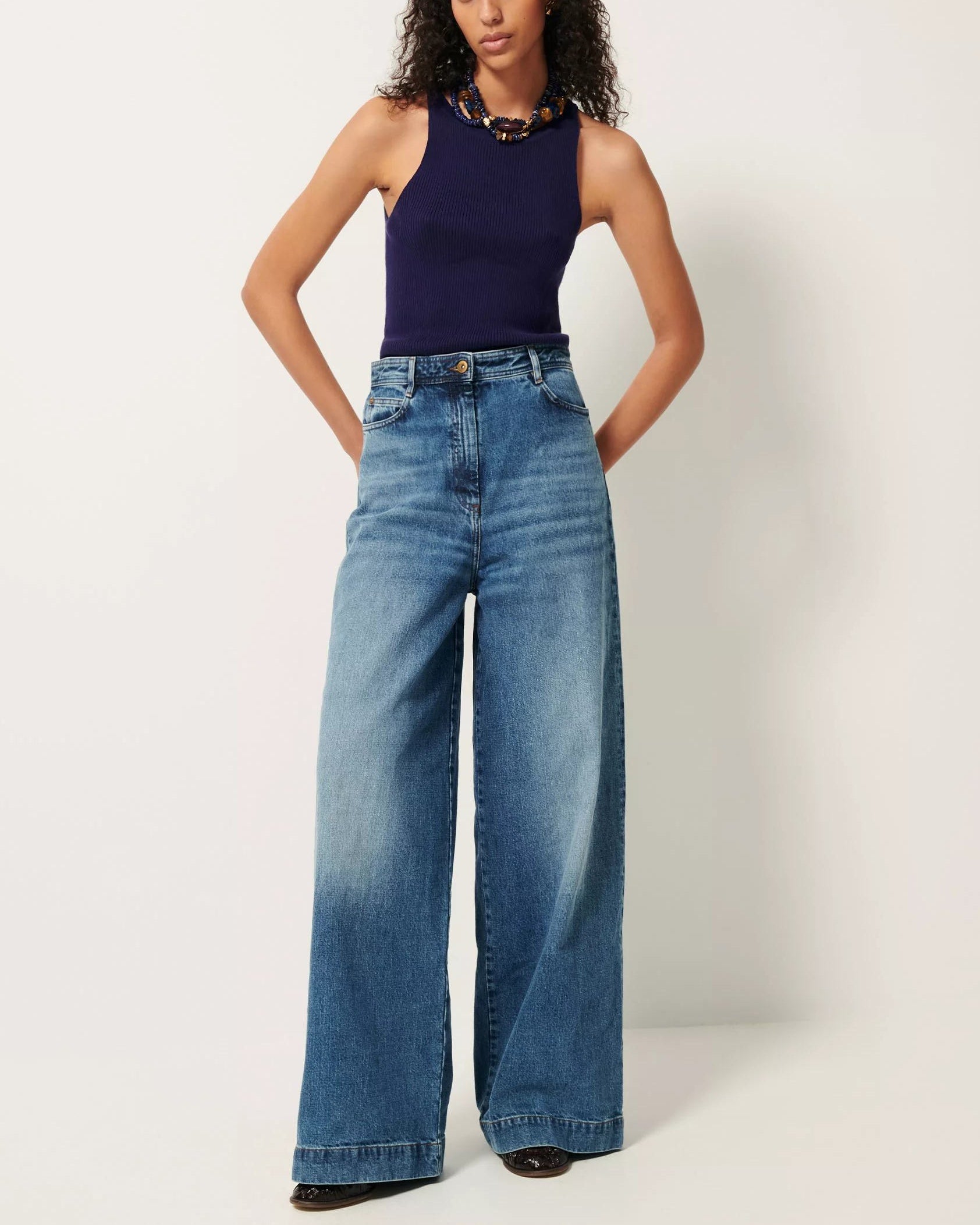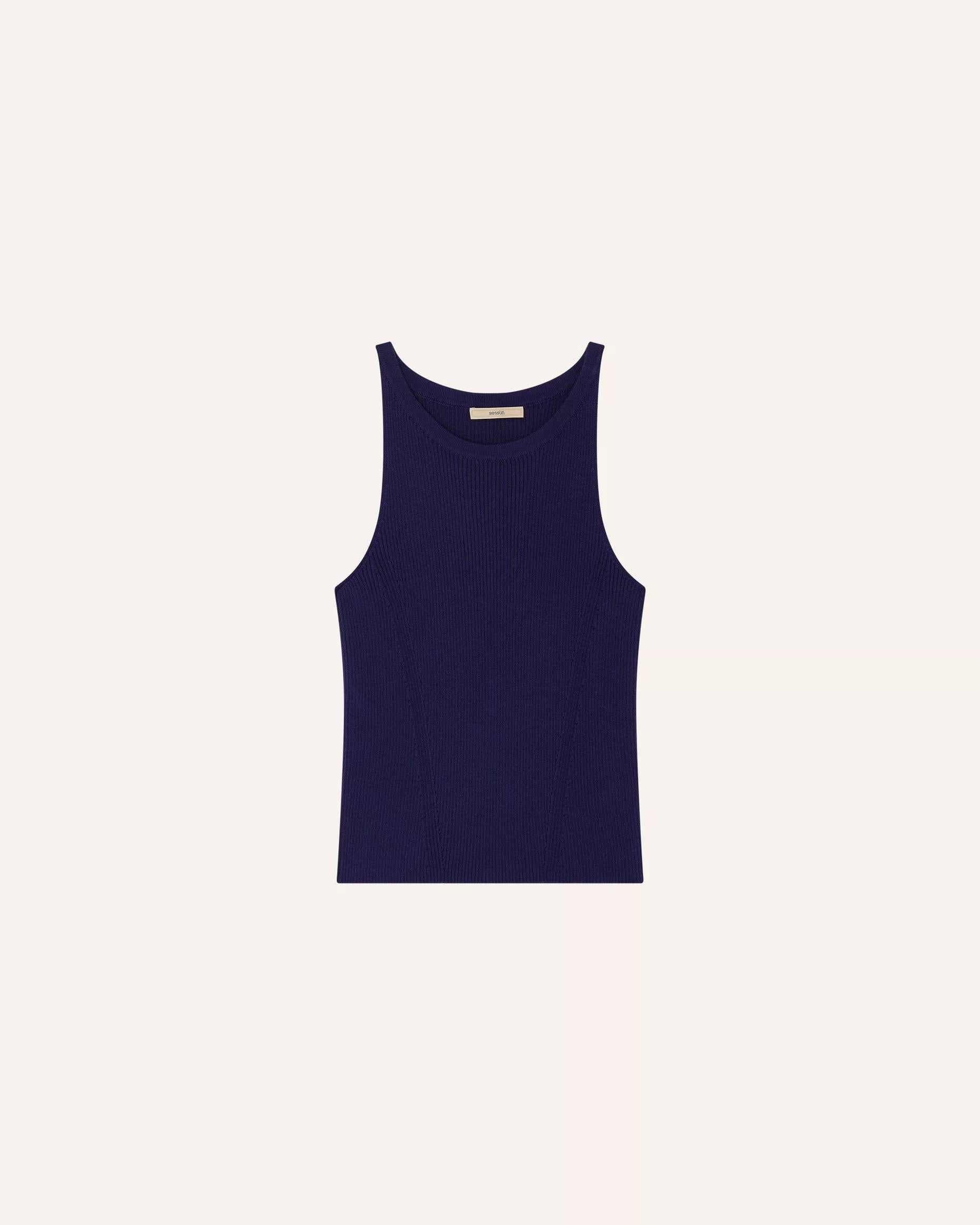 Tank top with an American neckline in a fine knit fabric with openwork details.
