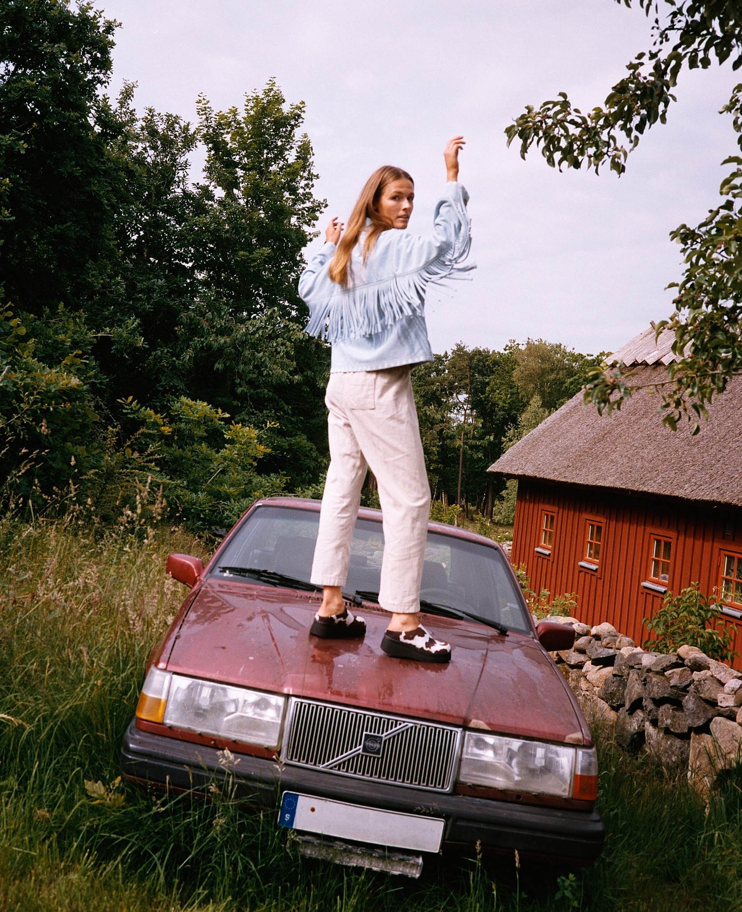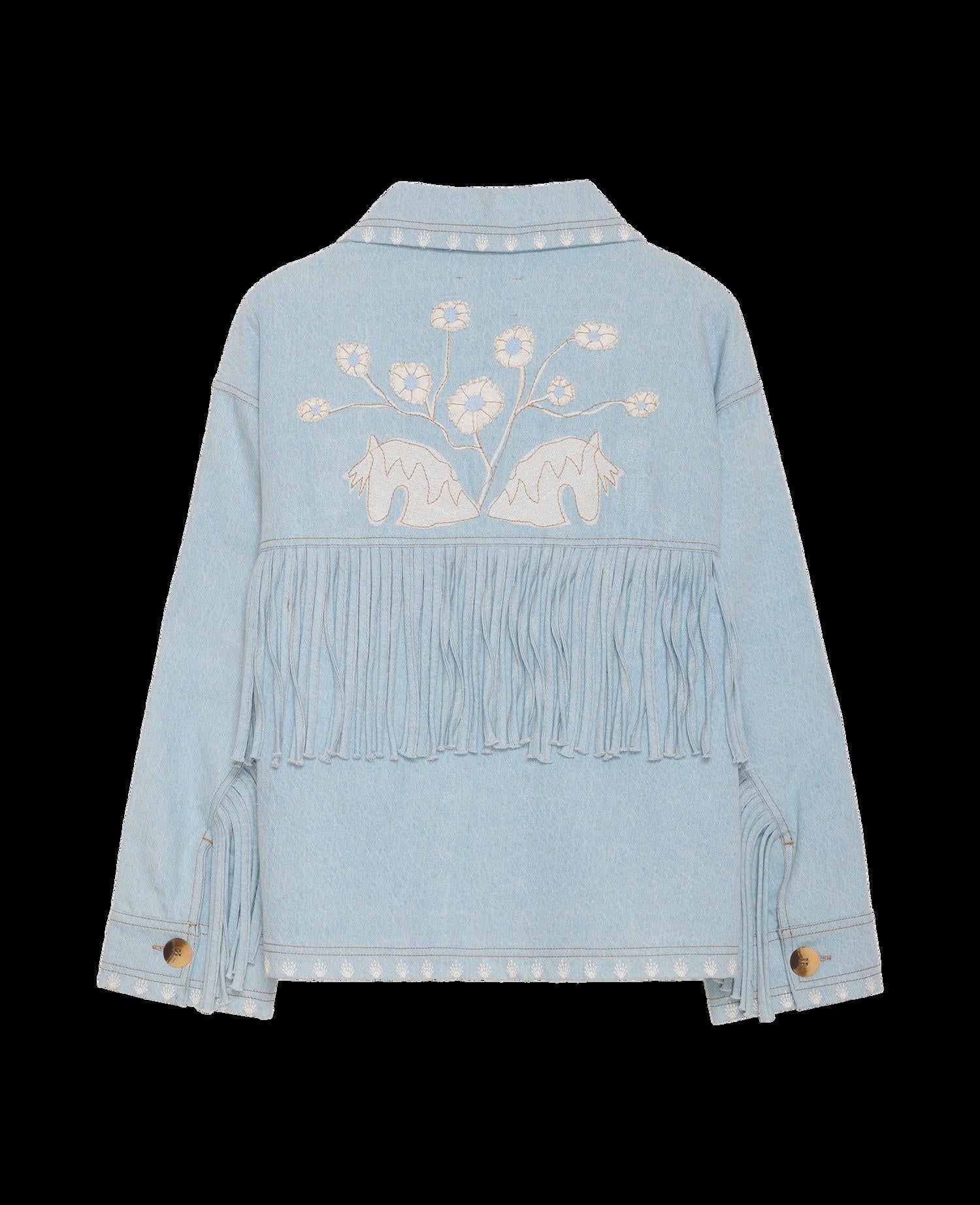 Machine wash cold with like colors. Turn the jacket inside-out to protect the indigo finish. Use a mild detergent and avoid bleach. Hang to dry or tumble dry on a low setting. If needed, iron on a low heat to refresh creases. Store away from direct sunlight to preserve color depth over time.