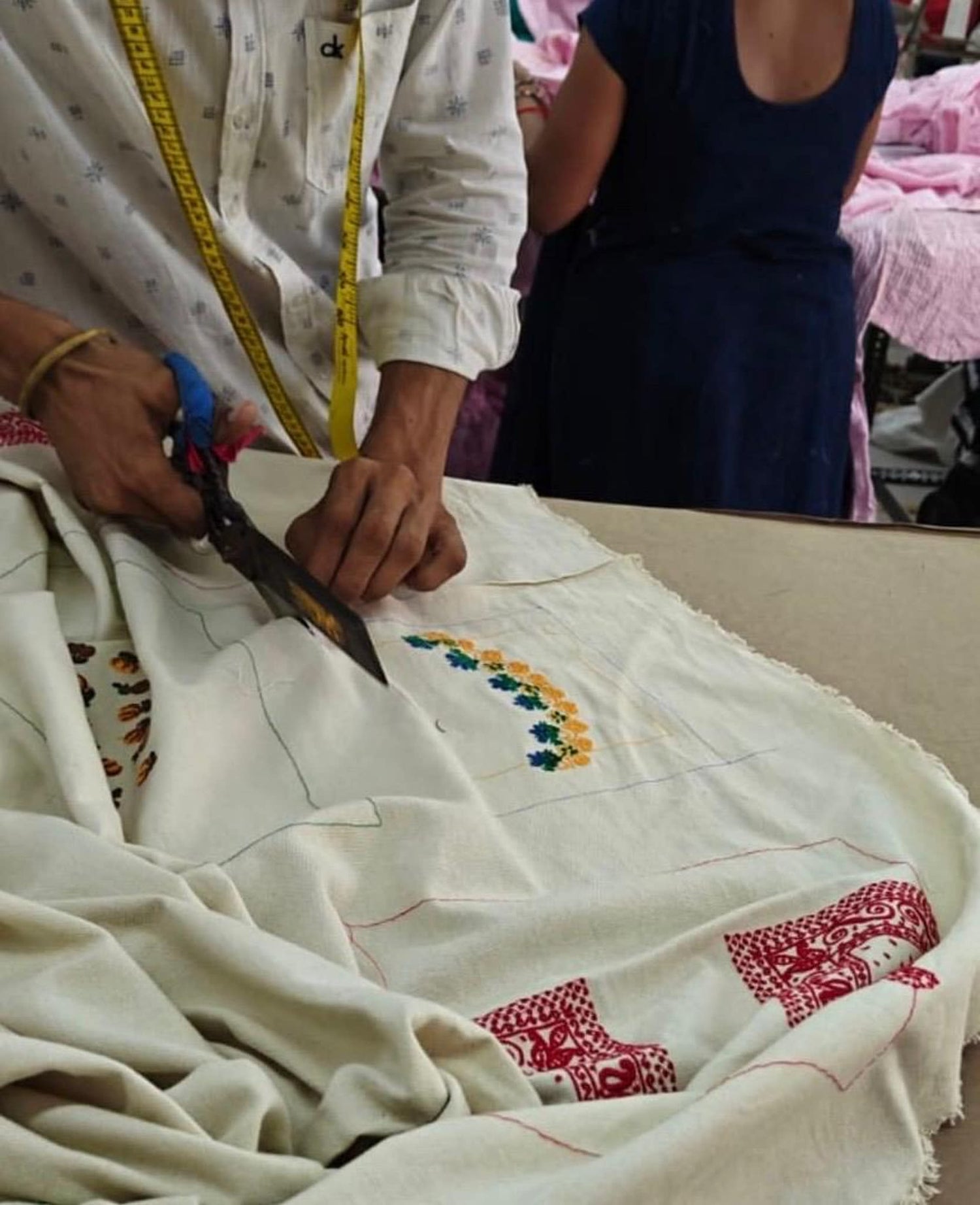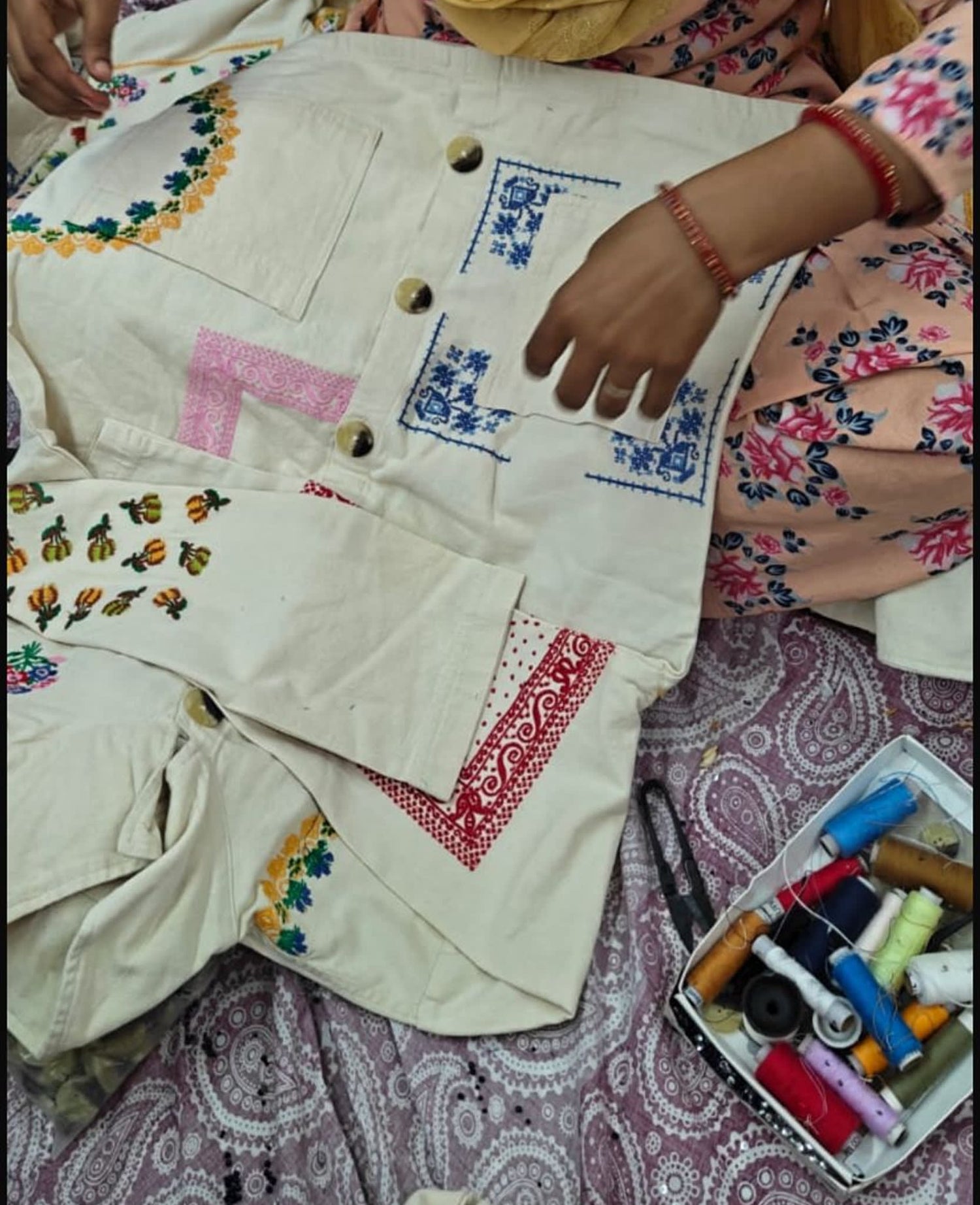 - Embroidery: LOVE written in Hindi and a Hamsa hand, inspired by India's artistic heritage