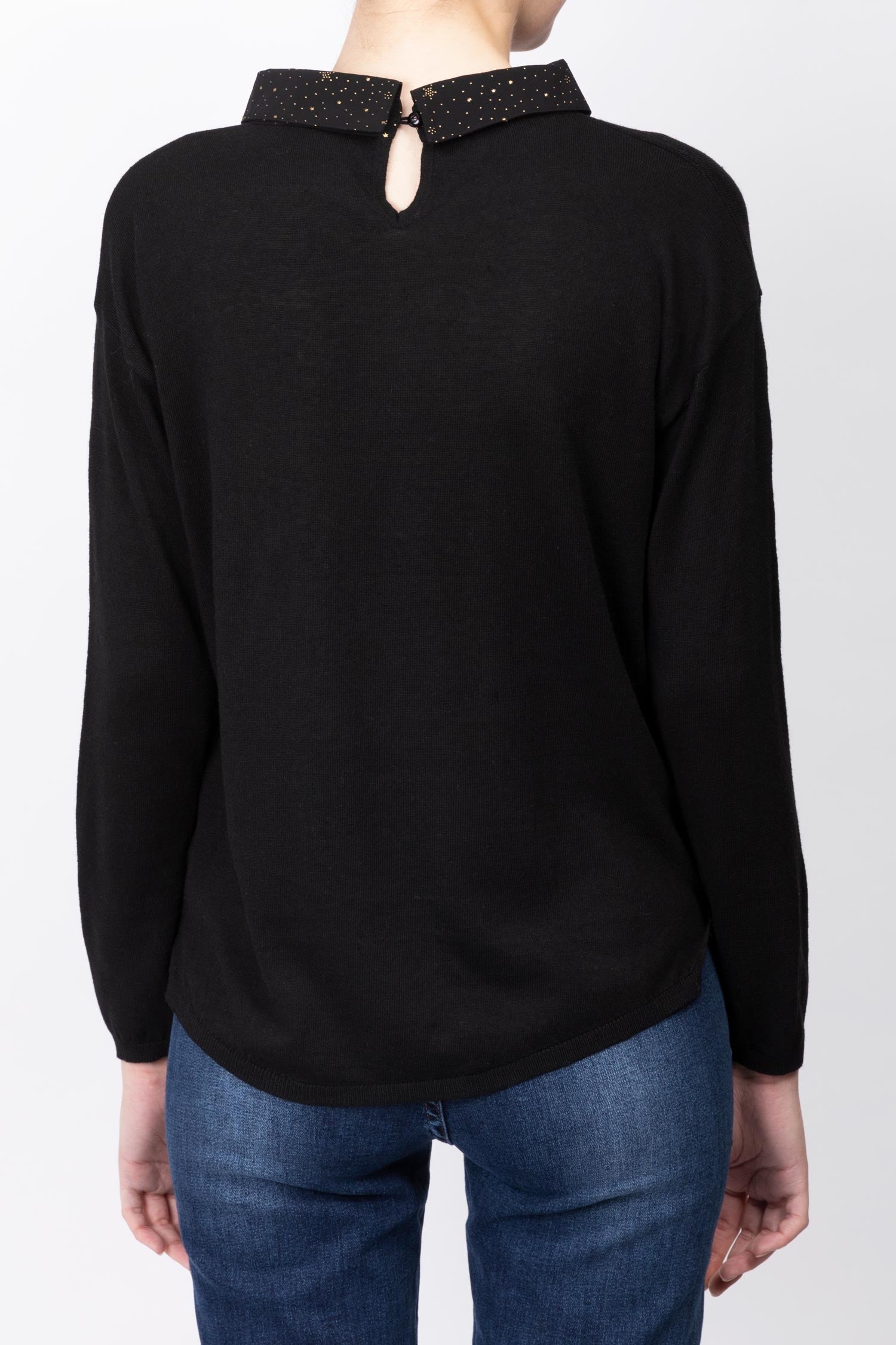 A smart and stylish Star Printed Top from CLEMENCE made from soft fabric for an elevated feel, this top pairs with jeans for the weekend as well as sharp tailoring for the office. Featuring star prints on collar and hem, it is finished with a point collar for a modern touch. Model is 177cm tall and wears size S.