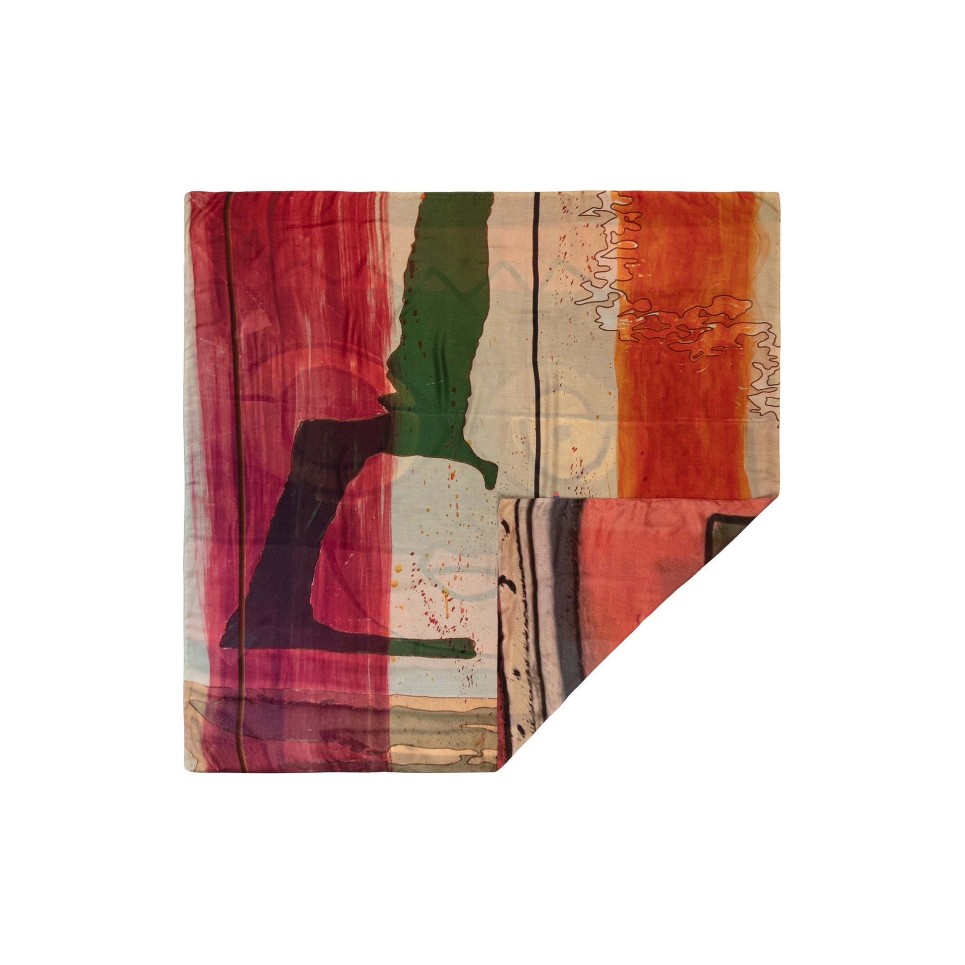 Single face, square shaped scarf, made of a soft, fluid silk/modal fabric with an all-over, high-resolution printed, authentic visual.