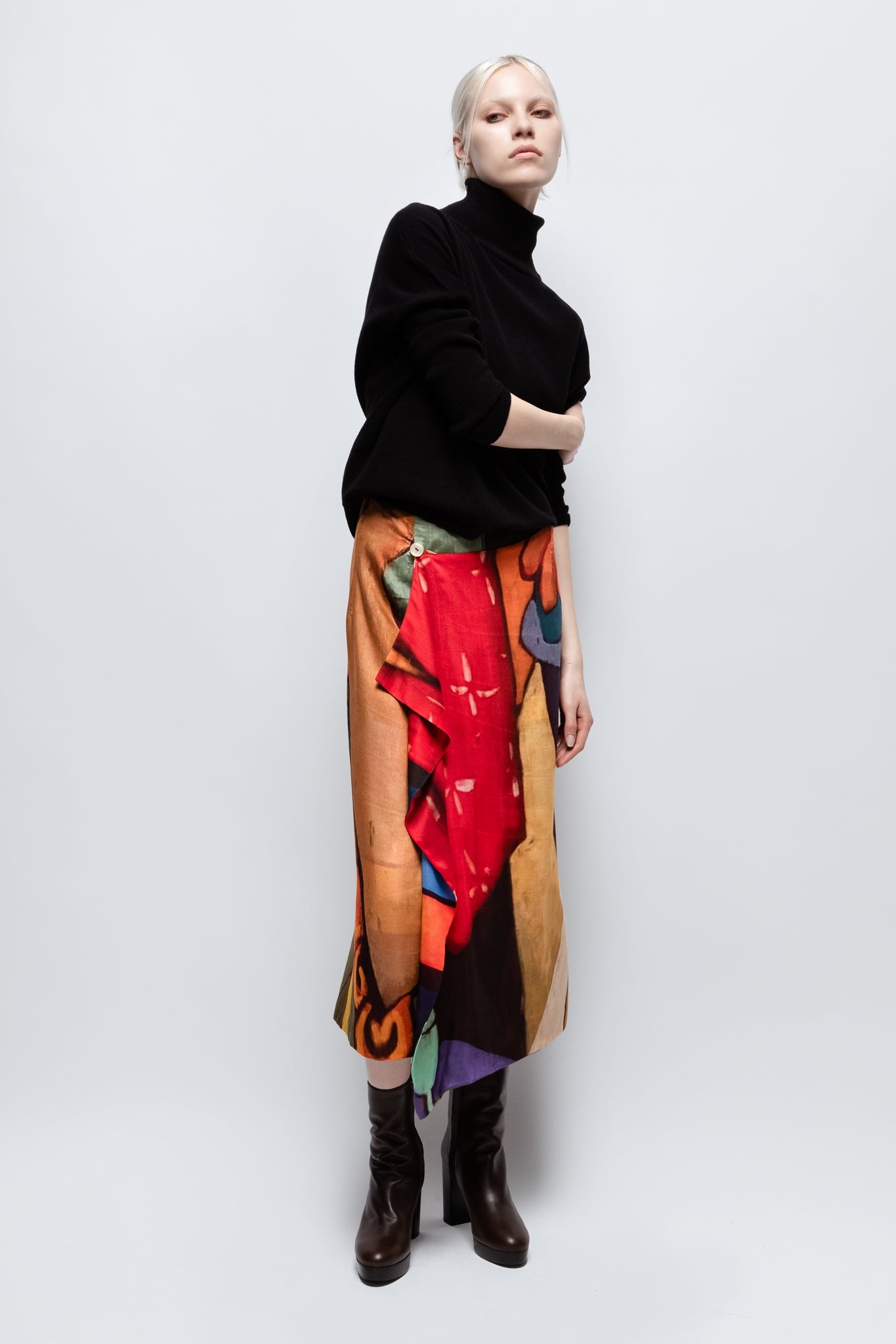 Tea double sided, reversible draped wrap skirt in a fluent modal-silk fabric.