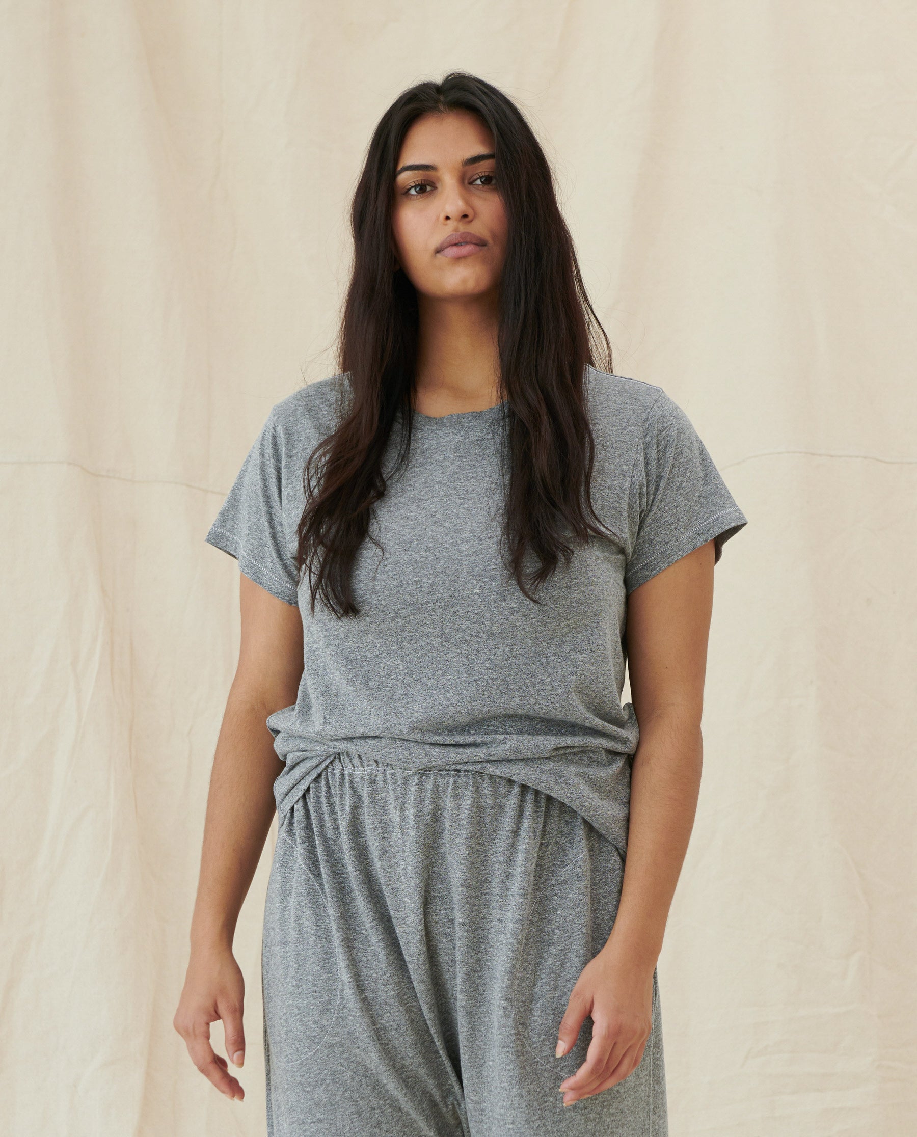 This perfect tee is a bit more narrow and a touch longer than our classic boxy crew. It is straight through the body and has all the softness and detailing of a timeless vintage tee.