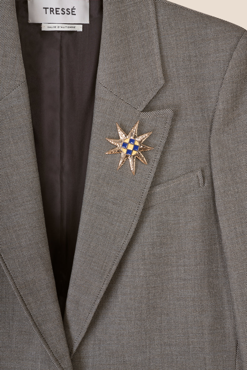 Tailored jacketLong sleevesTailored collarWelt pocket and welt pockets with flap"TRS" buttonsRemovable "Checkered Sun" brooch