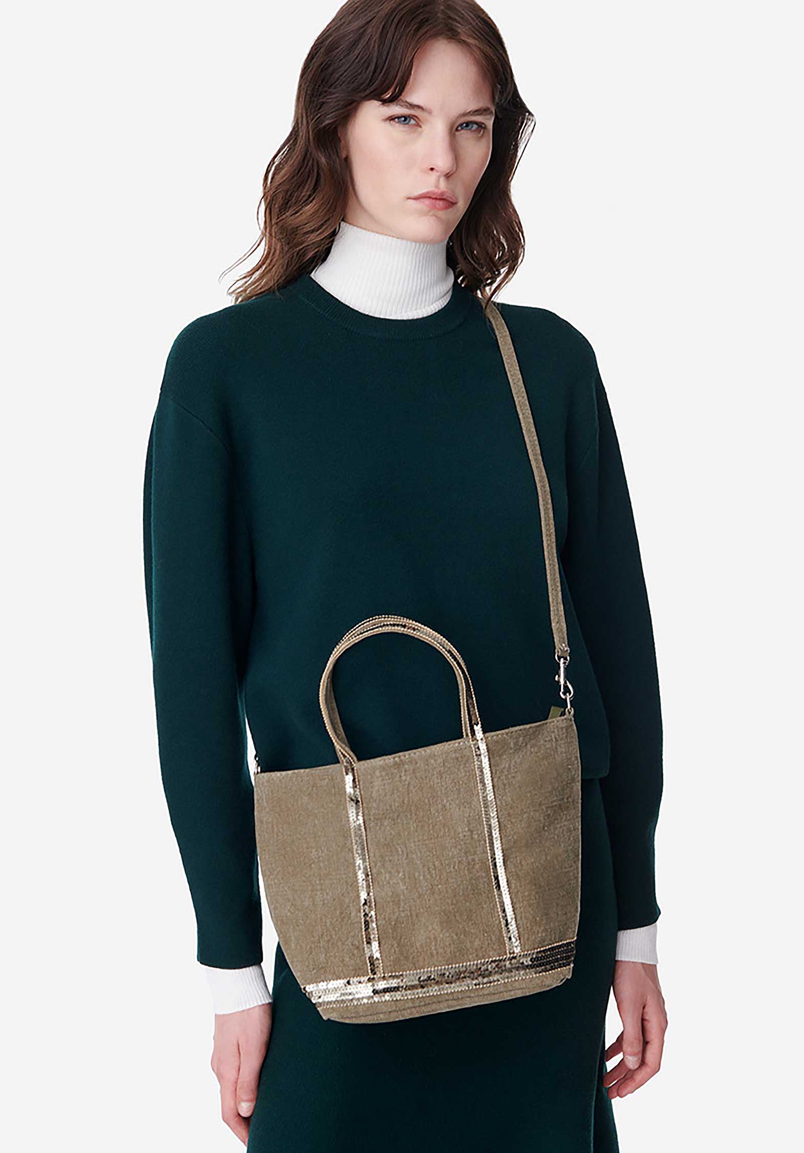 Made in our workshops just outside Paris, the Cabas has been a Vanessa Bruno staple since 1998. Presented here in its Belgian linen version, this lightweight, eco-responsible model is naturally embellished with the sequins that have made its reputation. Mini, the S format stands out for its limited volume, making it the ideal companion for carrying just the essentials... and a few extras like a pocket book or a pair of sunglasses.